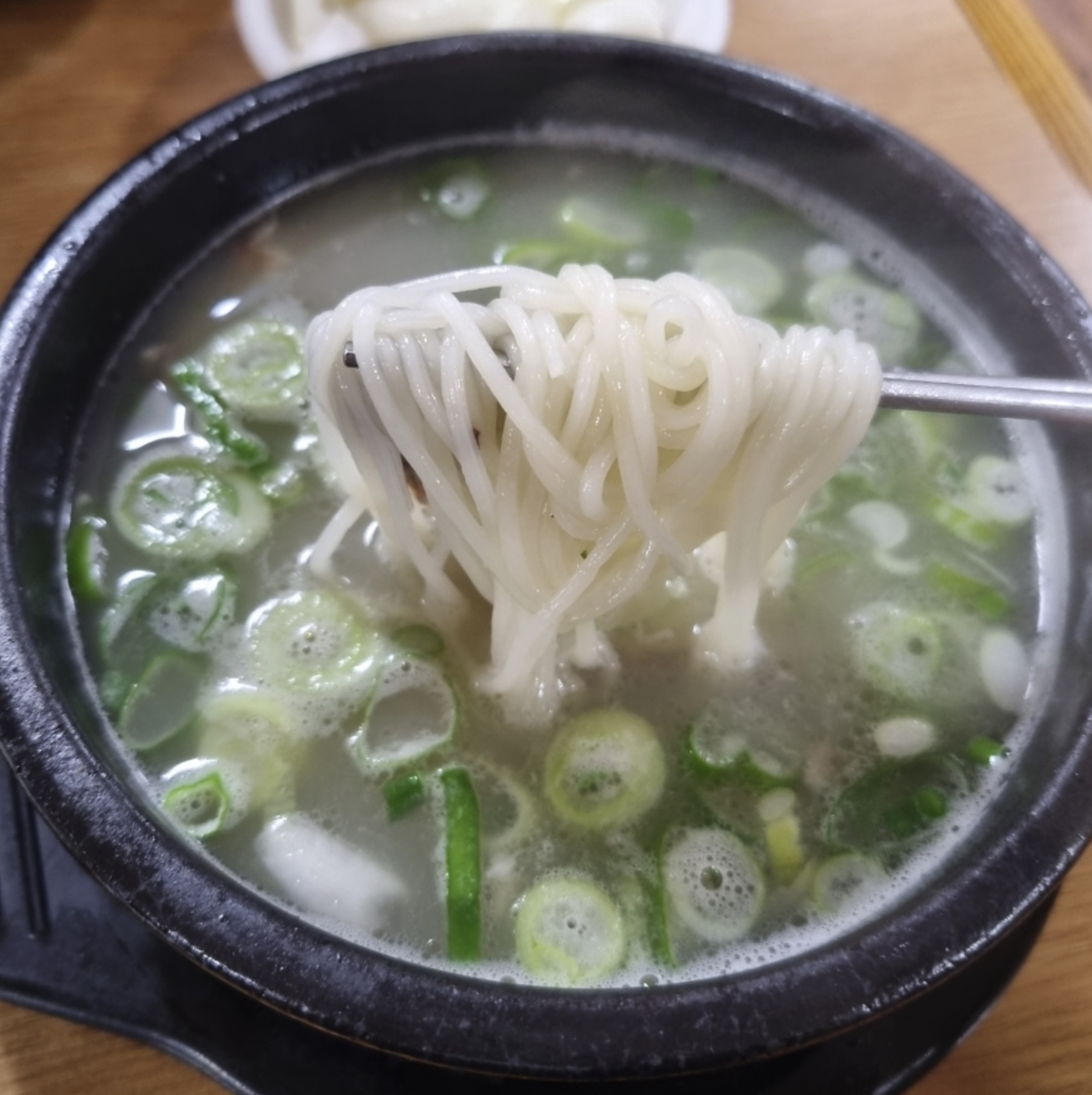 설렁탕의 국물 역시 갈비탕과 비슷하게 맑고 뽀얀 느낌입니다. 국물이 아주 진하지는 않지만, 그렇다고 가볍지도 않은, 적당한 감칠맛을 지니고 있었습니다. 자극 없이 슴슴하면서도 깊이가 있어 '할머니가 끓여주는 맛'이라는 표현이 절로 떠올랐습니다.